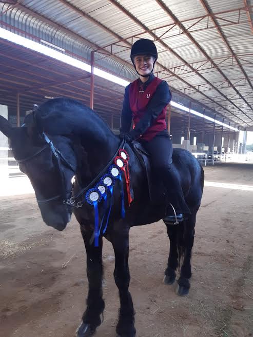 Baie geluk aan Kayla Janse van Vuuren wat uitstekend gery het by Sanesa interskole kompetisie vir “Saddle Seat”. Sy spog met agt eerste plekke, twee tweede plekke en twee derde plekke . Kayla het haar Gauteng Provinsiale kleure verwerf en ‘n plek in die Gauteng span vir die Nationale kompetisie.  Sterkte Kayla met Nationals!